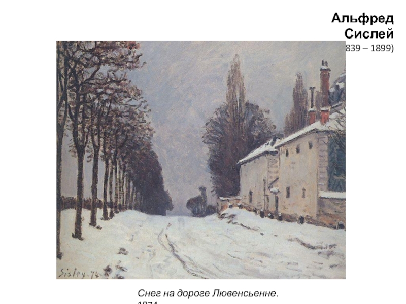 Альфред Сислей(1839 – 1899)Снег на дороге Лювенсьенне. 1874