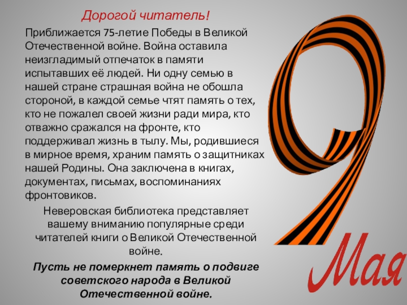 Неверовская библиотека представляет вашему вниманию популярные среди читателей книги о Великой Отечественной войне.