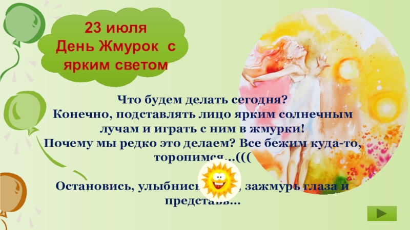 подставлять лицо ярким солнечным лучам и играть с ним в