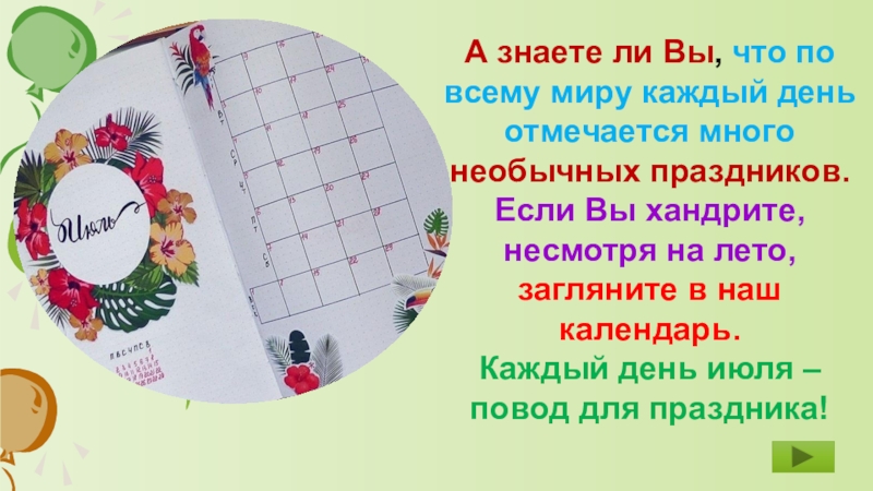 отмечается много необычных праздников. Если Вы хандрите, несмотря на лето,