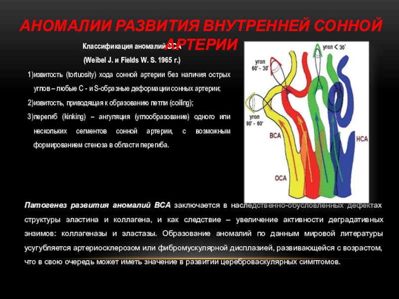 Слайд 13АНОМАЛИИ РАЗВИТИЯ ВНУТРЕННЕЙ СОННОЙ АРТЕРИИ