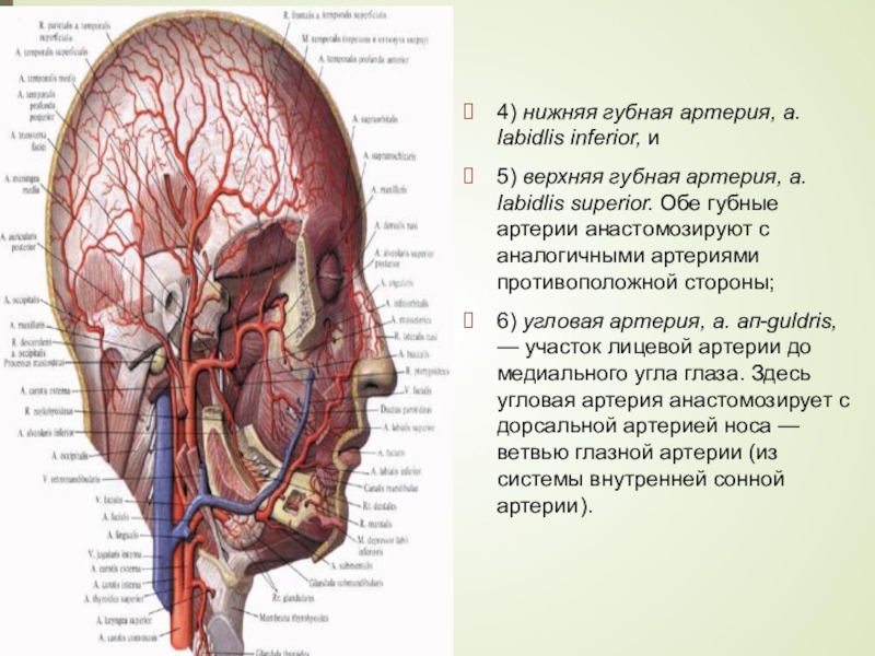 Слайд 224) нижняя губная артерия, a. labidlis inferior, и