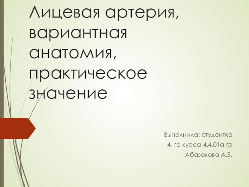 Слайд 19Лицевая артерия, вариантная анатомия, практическое значение