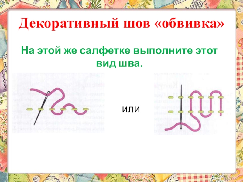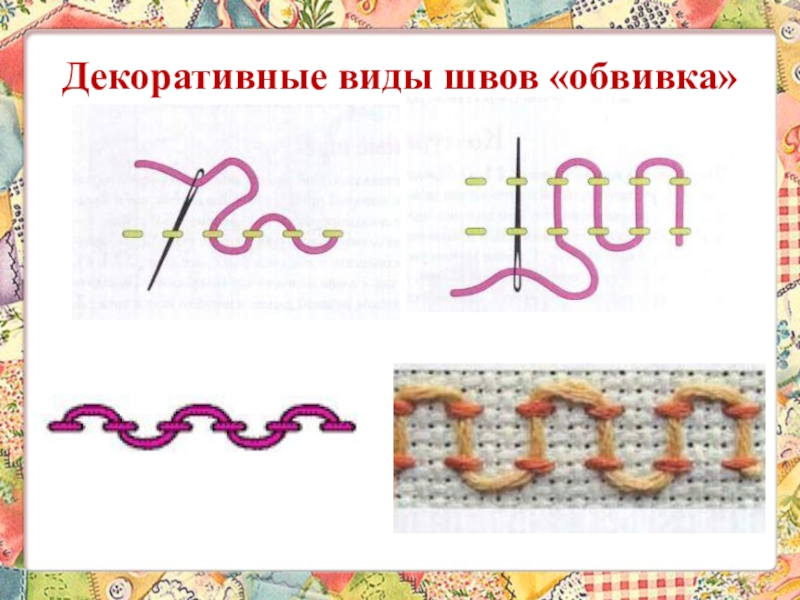 Слайд 10 Украшающий шов «вперед иголку» имеет много вариантов