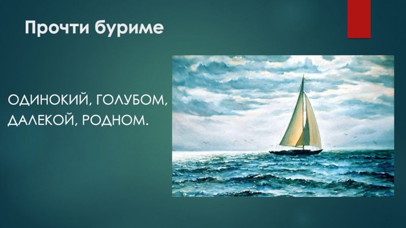 Прочти буримеОДИНОКИЙ, ГОЛУБОМ,ДАЛЕКОЙ, РОДНОМ.