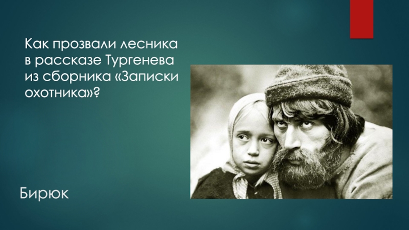 БирюкКак прозвали лесника в рассказе Тургенева из сборника «Записки охотника»?