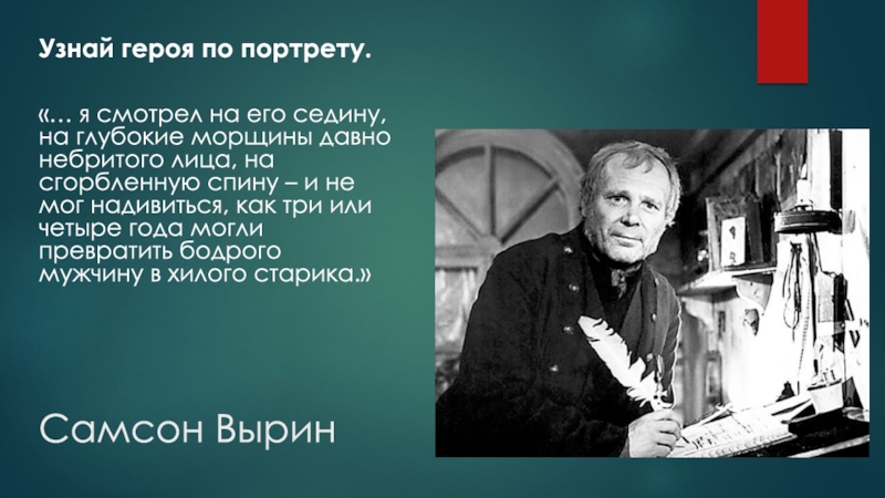 Самсон ВыринУзнай героя по портрету.«… я смотрел на его седину, на глубокие морщины давно небритого лица, на