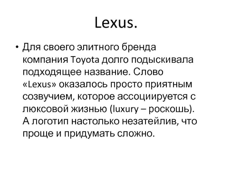 Слово «Lexus» оказалось просто приятным созвучием, которое ассоциируется с люксовой