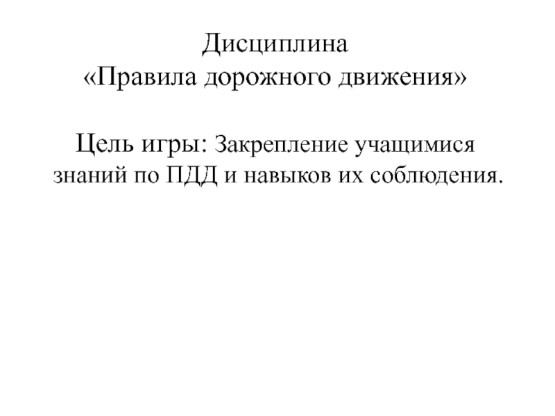 Цель игры: Закрепление учащимися знаний по ПДД и