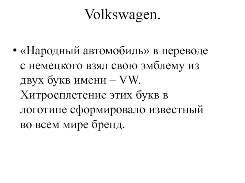 двух букв имени – VW. Хитросплетение этих букв в логотипе