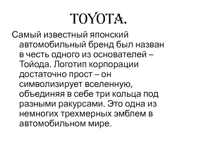 из основателей – Тойода. Логотип корпорации достаточно прост – он
