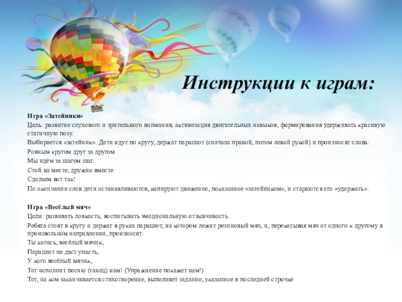 Слайд 1«Игровой парашют»