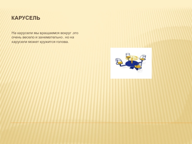 карусельНа карусели мы вращаемся вокруг .это очень весело и занемательно . но на карусели может кружится голова.