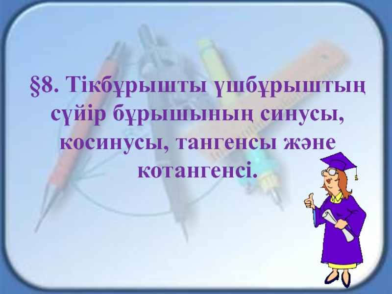 Слайд 1II тарау. Тікбұрышты үшбұрыштың қабырғалары мен бұрыштарының арасындағы байланыстар.