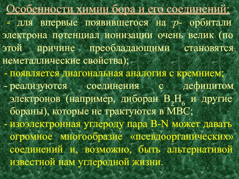 самая «аномальная группа»; «аномальные» элементы: B, Ga, Tl – в главной подгруппе,