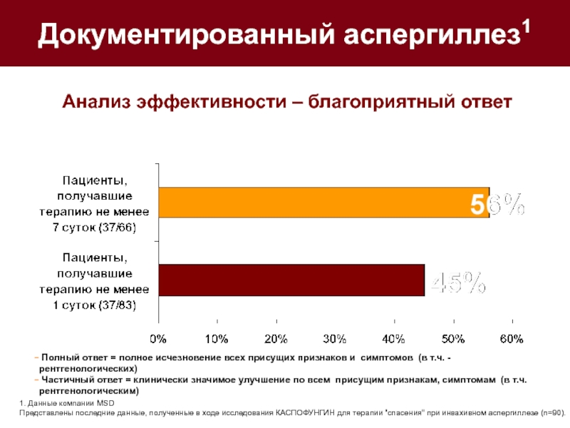 Представлены последние данные, полученные в ходе исследования КАСПОФУНГИН для терапии "спасения" при инвахивном аспергиллезе (n=90).