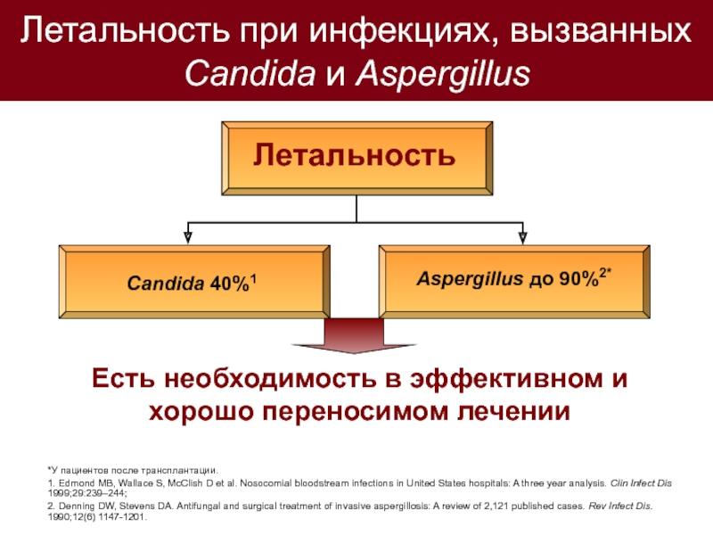Летальность при инфекциях, вызванных Candida и Aspergillus