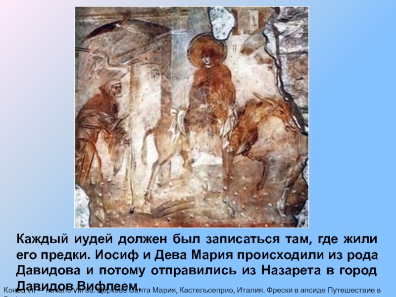 Конец VII — начало VIII вв. Церковь Санта Мария, Кастельсеприо, Италия. Фрески в апсиде Путешествие в Вифлеем