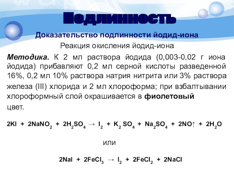 2NaI + 2FeCI3 → I2 + 2FeCI2 + 2NaCI