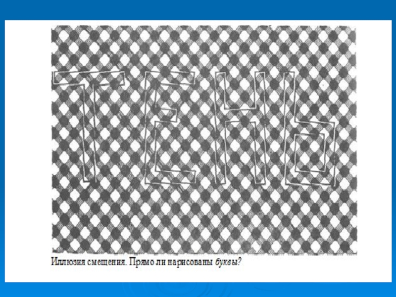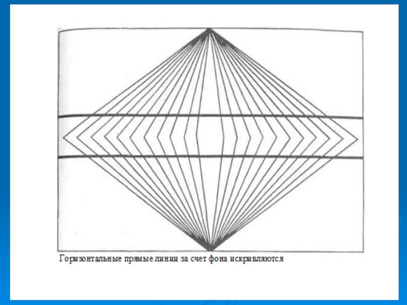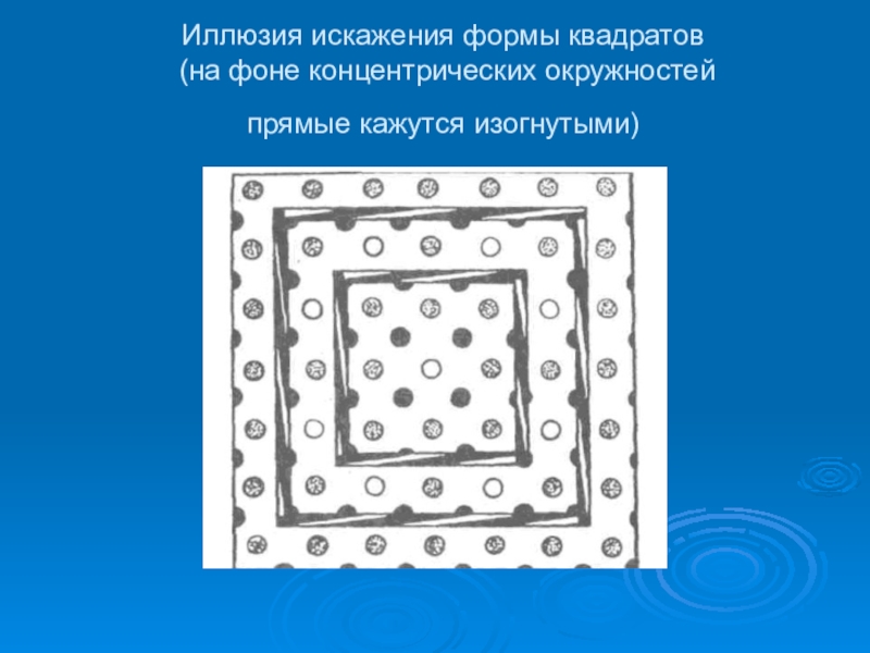 Слайд 2Иллюзия искажения формы квадратов (на фоне концентрических окружностей прямые кажутся