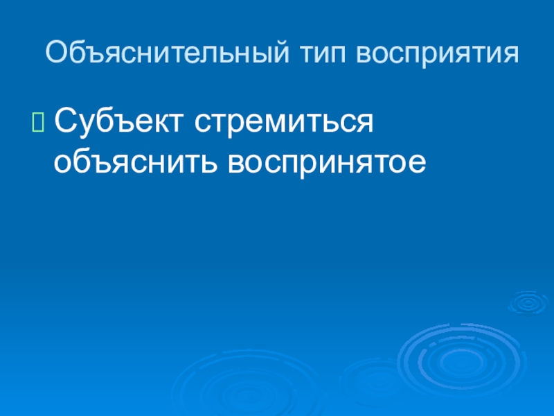 Объяснительный тип восприятияСубъект стремиться объяснить воспринятое