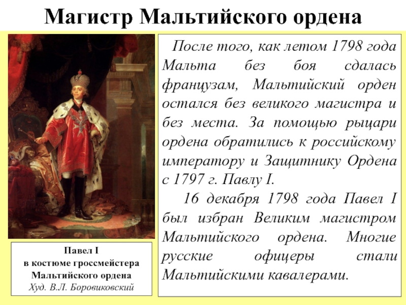 в костюме гроссмейстера Мальтийского ордена