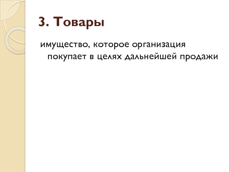 3. Товарыимущество, которое организация покупает в целях дальнейшей продажи