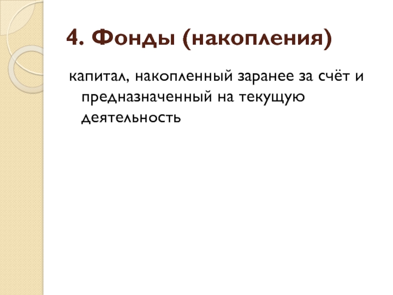 4. Фонды (накопления)капитал, накопленный заранее за счёт и предназначенный на текущую деятельность
