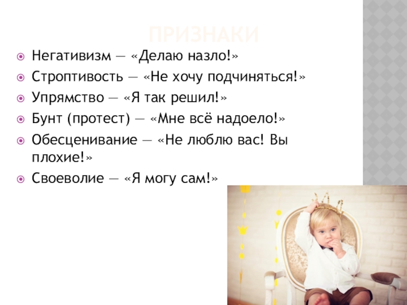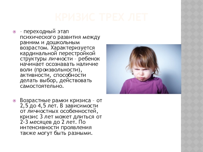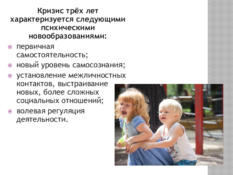 Слайд 8Кризис трёх лет характеризуется следующими психическими новообразованиями:
