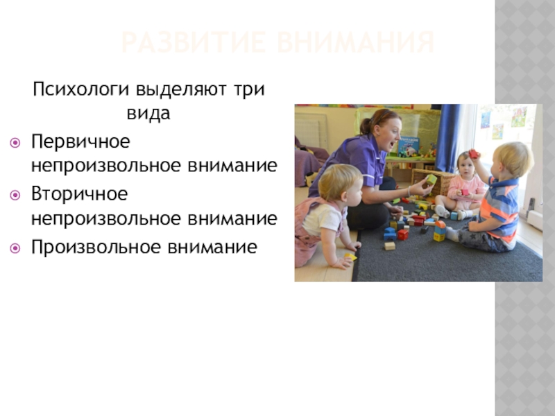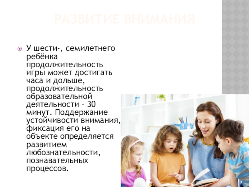 внимания, фиксация его на объекте определяется развитием любознательности, познавательных процессов.
