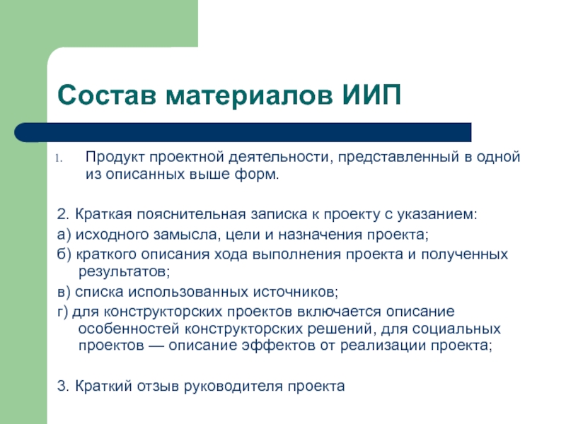 г) для конструкторских проектов включается описание особенностей конструкторских решений, для социальных проектов — описание эффектов от реализации проекта;