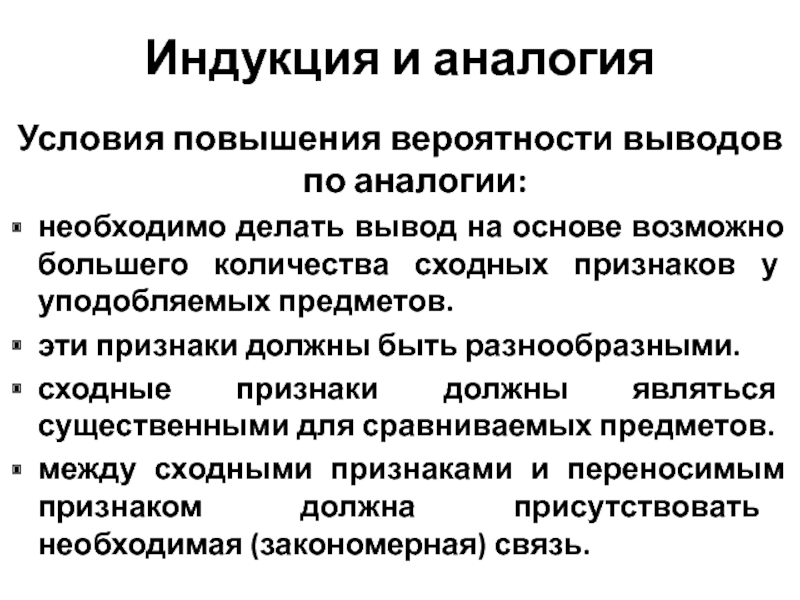 между сходными признаками и переносимым признаком должна присутствовать необходимая (закономерная) связь.