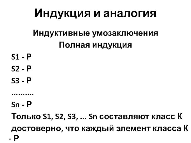 В полной индукции перечисляются все объекты из какой-либо группы и делается вывод обо всей этой группе. Вывод в полной индукции достоверен.