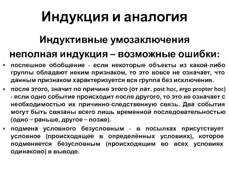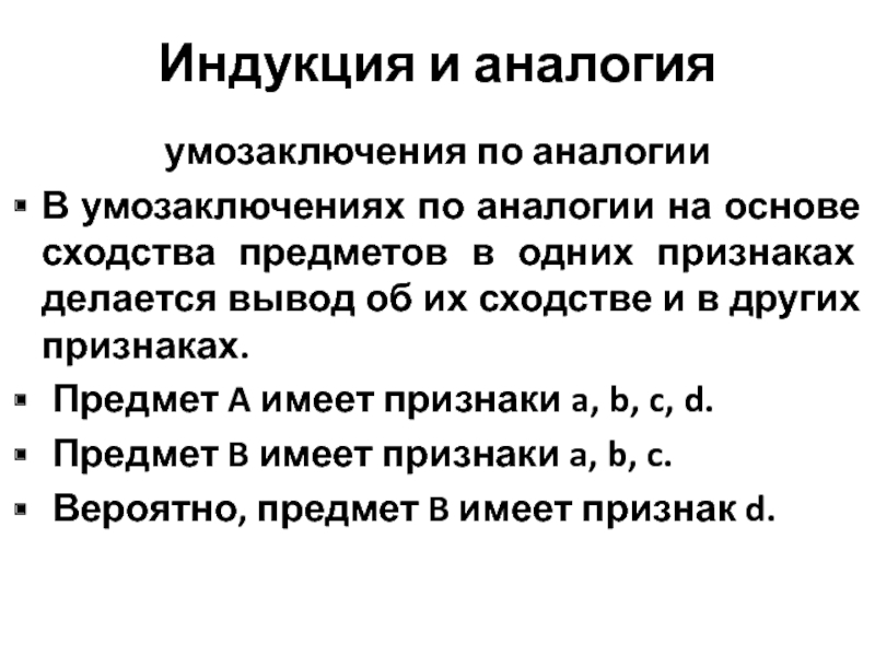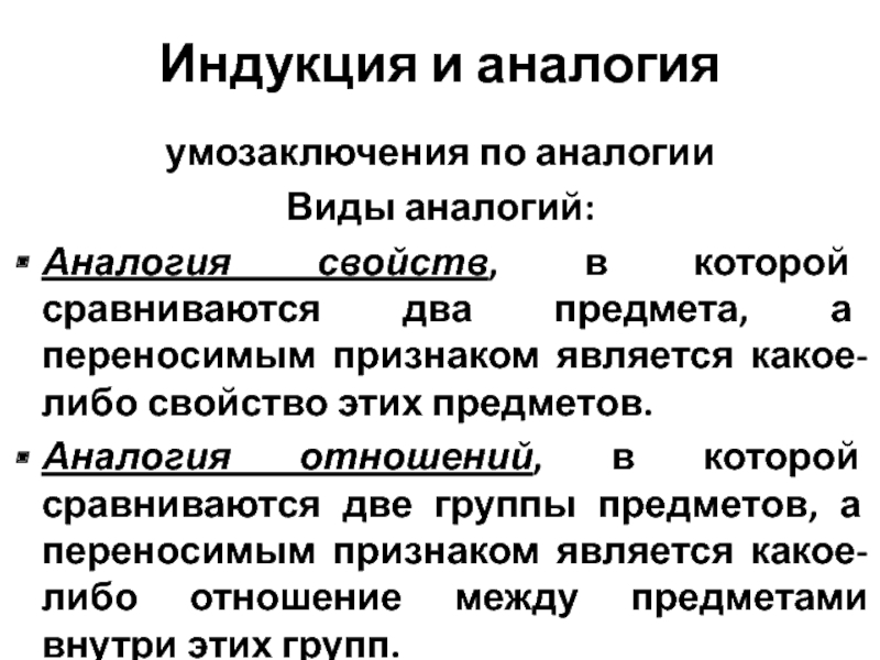 представляет собой умозаключение, в посылках которого наряду с повторяемостью признака у некоторых явлений класса содержится также информация о зависимости этого признака от определенных свойств явления.