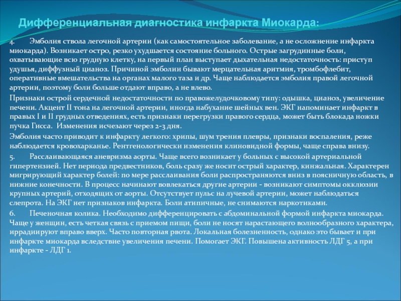 Однако это бывает не всегда и, увы, зачастую приводит к запоздалой диагностике инфаркта миокарда, так как врачи не ассоциируют эти боли с сердечной патологией. Это тем более огорчительно, что подобная симптоматика бывает, как правило, при обширных и глубоких инфарктах миокарда и объясняется возникающим реактивным раздражением плевры.
