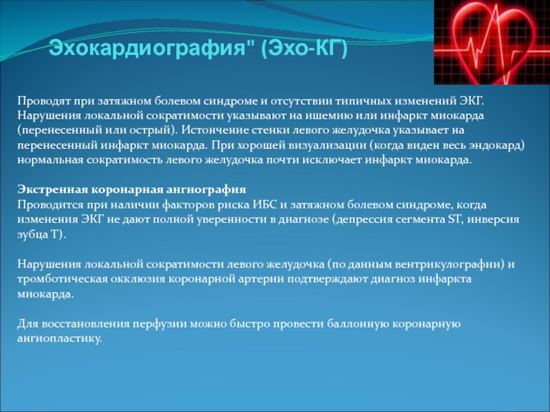 отсутствии типичных изменений ЭКГ. Нарушения локальной сократимости указывают на ишемию