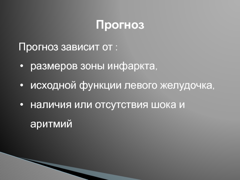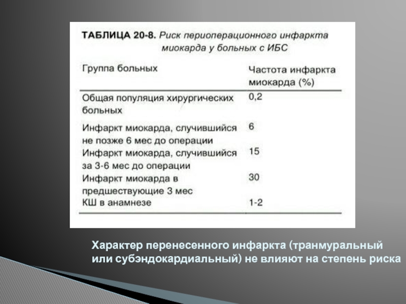 Слайд 3Характер перенесенного инфаркта (транмуральный или субэндокардиальный) не влияют на степень