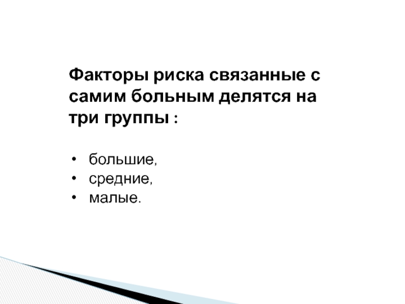 Слайд 6Факторы риска связанные с самим больным делятся на три группы