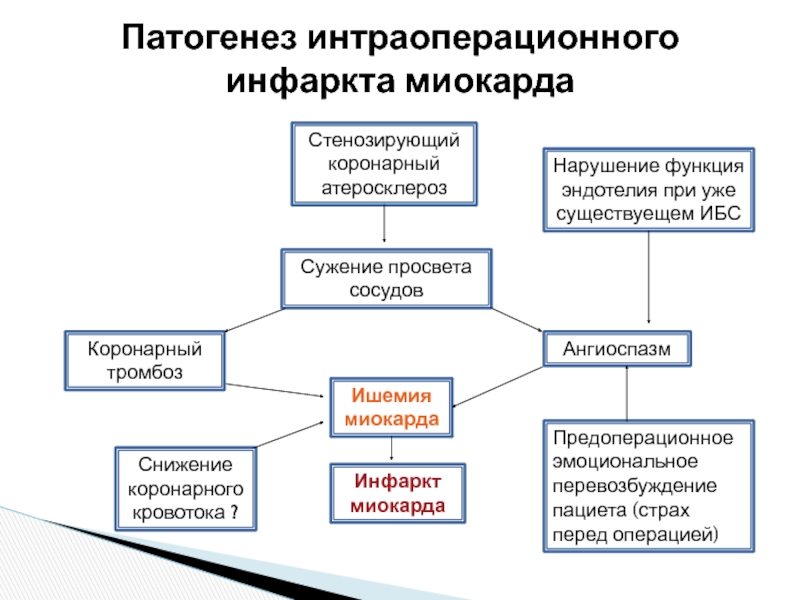 Слайд 18Патогенез интраоперационного инфаркта миокарда