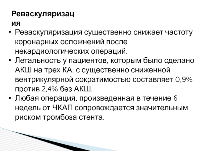 Реваскуляризация существенно снижает частоту коронарных осложнений после некардиологических операций.