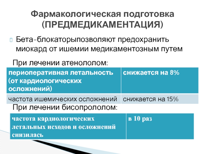 Слайд 22Бета-блокаторыпозволяют предохранить миокард от ишемии медикаментозным путем