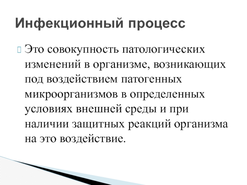 Слайд 4Это совокупность патологических изменений в организме, возникающих под воздействием патогенных