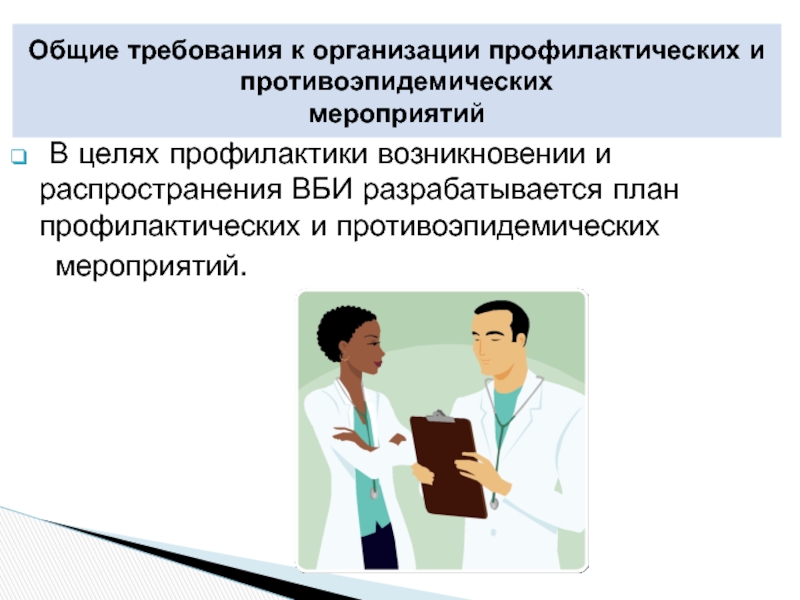 Слайд 16Общие требования к организации профилактических и противоэпидемических