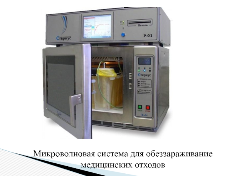 Слайд 65Микроволновая система для обеззараживание медицинских отходов