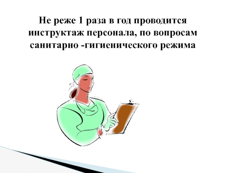 Слайд 25Не реже 1 раза в год проводится инструктаж персонала, по