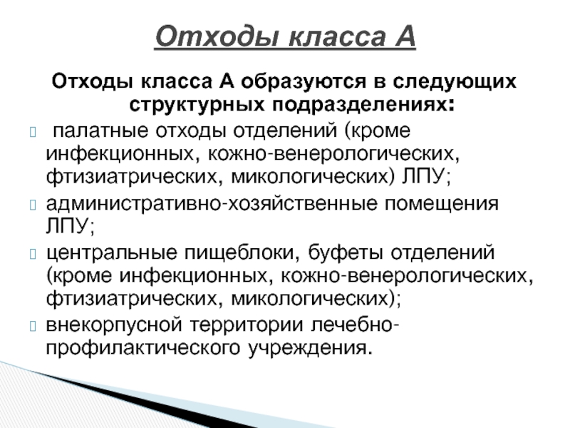 Класс А.Неопасные отходы лечебно-профилактических учреждений.