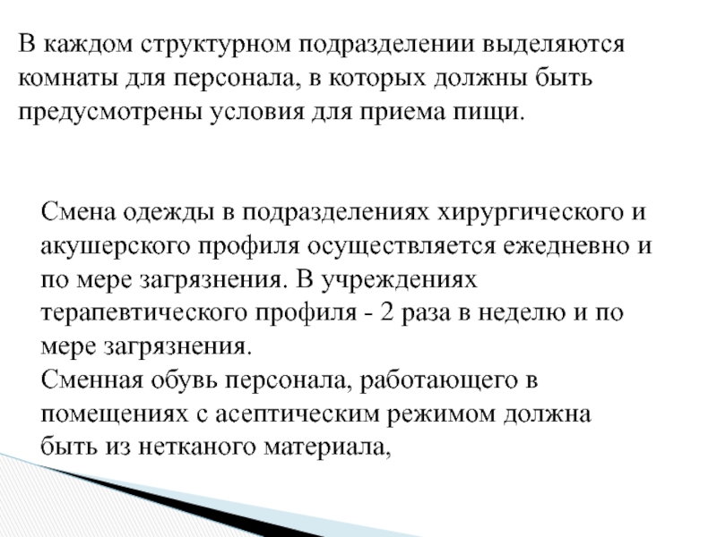 Слайд 48В каждом структурном подразделении выделяются комнаты для персонала, в которых