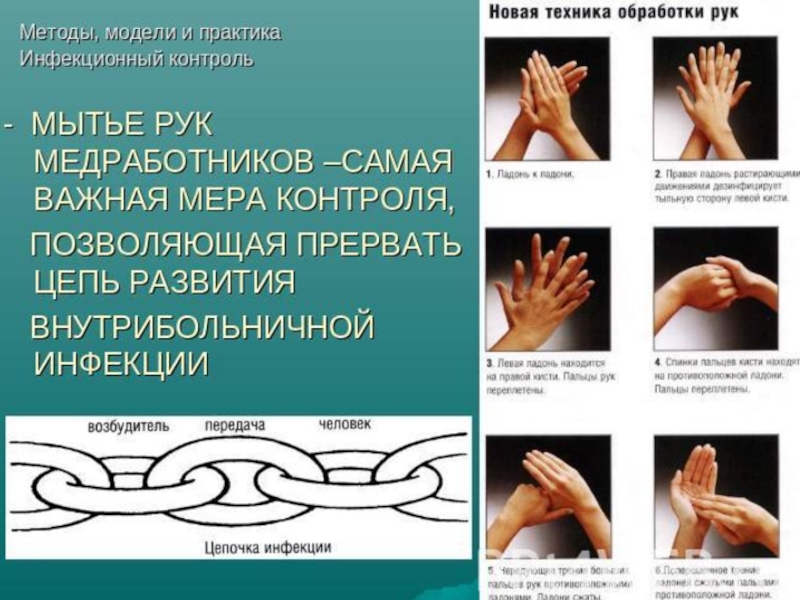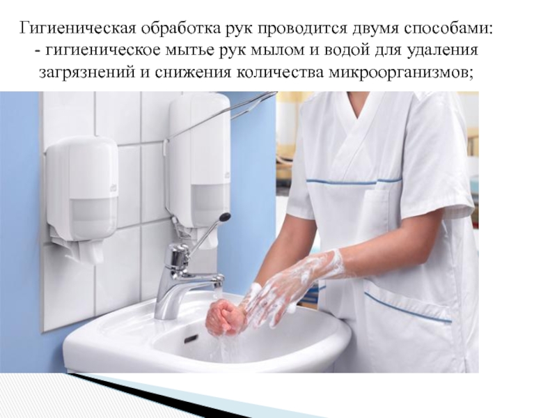 Слайд 42Обеспечивает правильную технологию проведения обработки рук