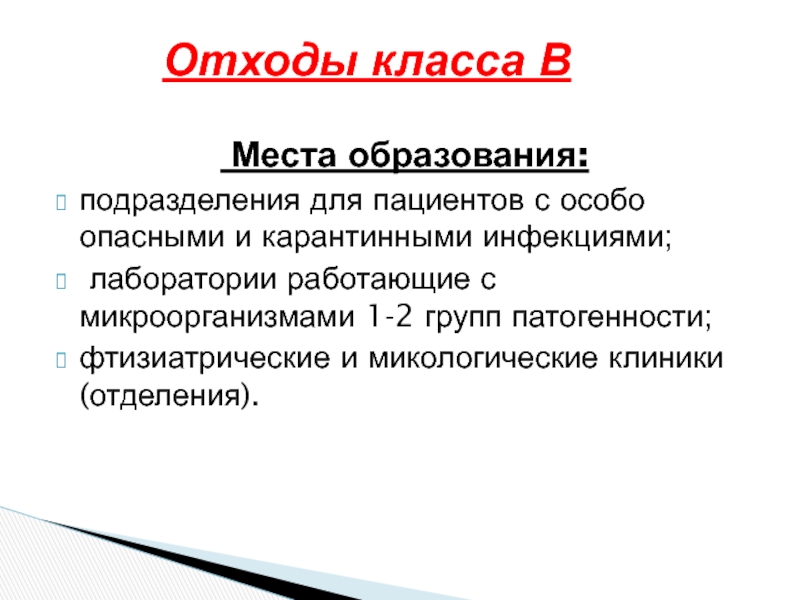 Класс В.Чрезвычайно опасные отходы лечебно-профилактических учреждений.
