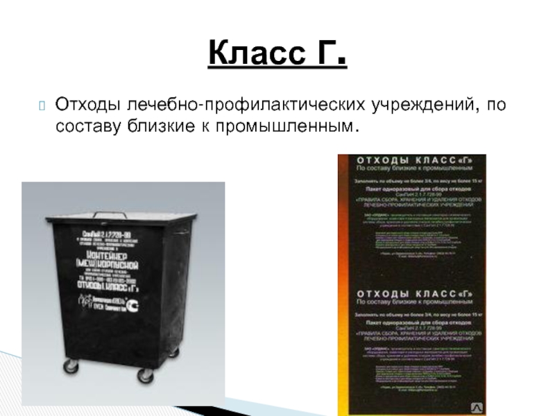 Слайд 59Отходы лечебно-профилактических учреждений, по составу близкие к промышленным.
